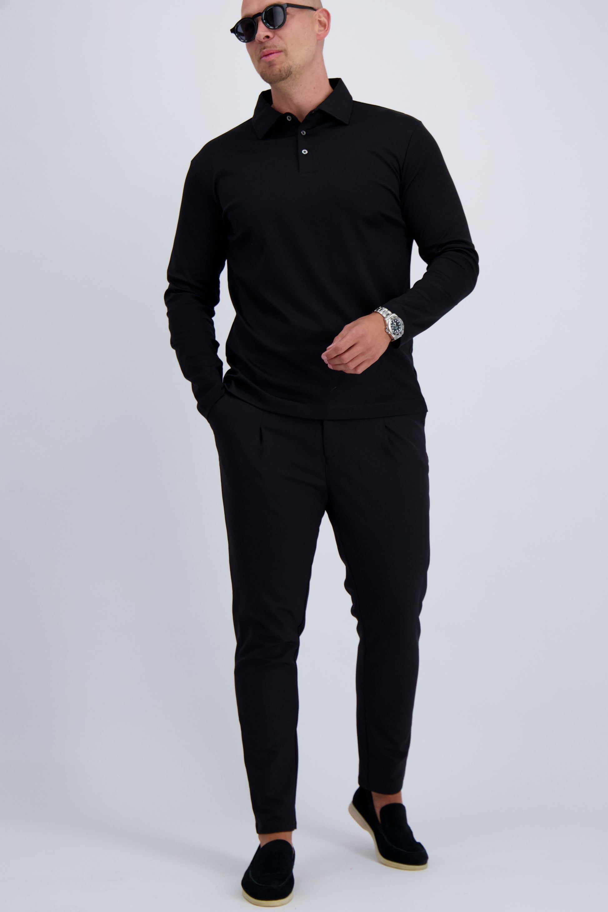 MERCERISED POLO LS | BLACK